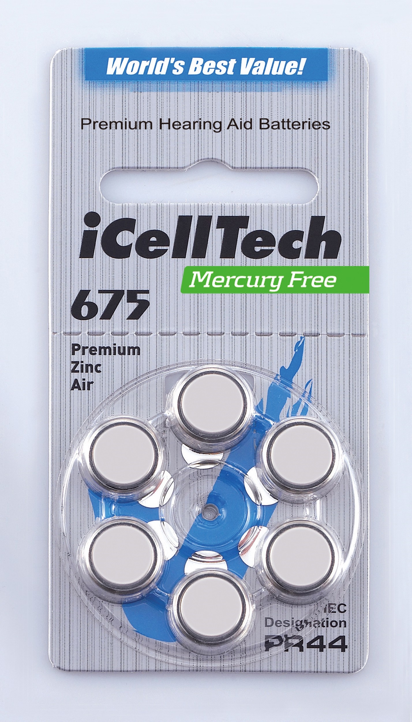 iCellTech Hörapparatsbatteri 675/Blå 6-pack